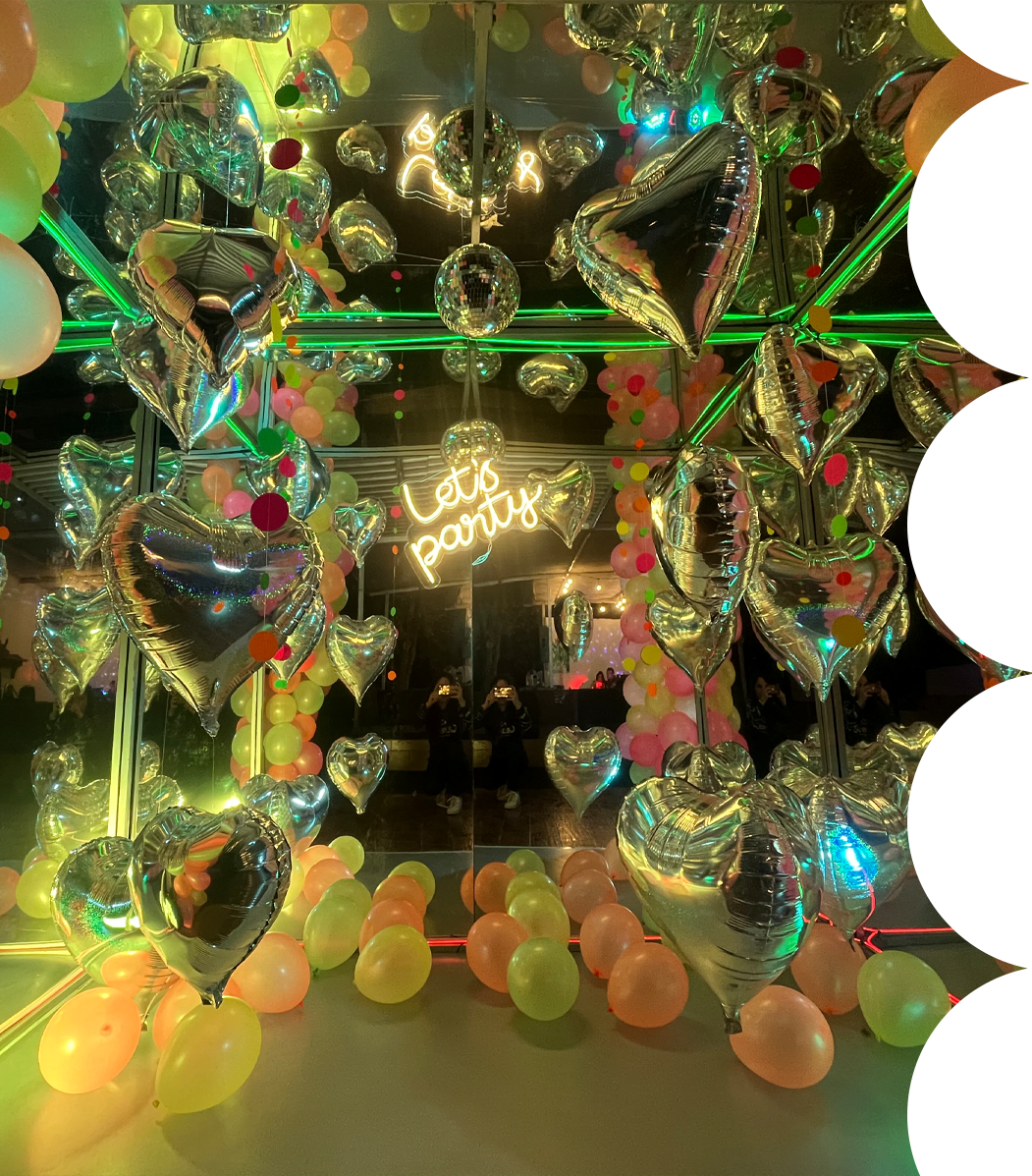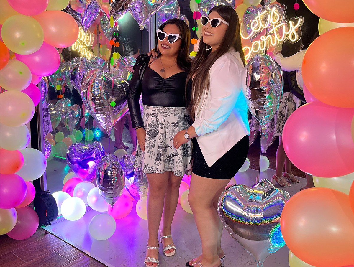 Cabina espejada Captura momentos únicos e instagrameables. Nuestra cabina es ideal para: eventos corporativos, bodas, 15 años, graduaciones, cumpleaños y mucho más. Su decoración se adapta a la temática que busques, con luces y letreros LED.